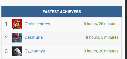 Si por ejemplo, consigo el número 1 en velocidad del 100% de sus trofeos/logros en 7 horas, y a los dos meses sale un nuevo DLC con nuevos trofeos, aunque los haga nada más publicarse esos trofeos, mi «velocidad» al hacer el 100% del juego será de 2 meses y 7 horas. Por lo cual, un jugador cualquiera que acaba de comprar el juego, lo jugará y me superará fácilmente. Se me quitará automáticamente de la lista dado que lo habrá hecho más rápido que yo. Como comprenderéis, «algo» de suerte también entra a jugar por culpa de estos factores.